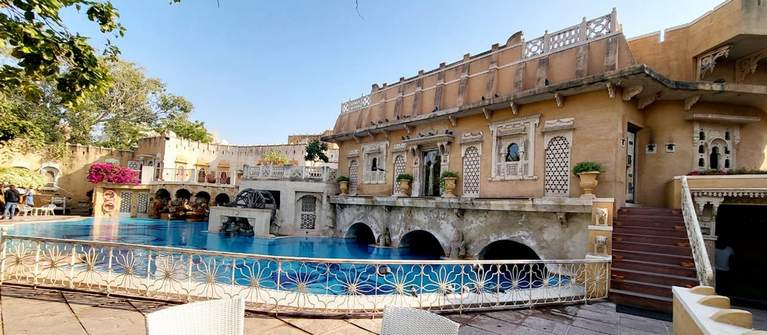 Ajit Bhawan is India’s first heritage hotel, from way back in the 1950s. The accommodation includes Six Suites, Ten Luxury Tents and Fifty Eight rooms. Each room and suite has been furnished distinctly, to reflect the beauty and crafts of the region. Antiques and family add to the grace of the rooms and public areas. The suites have marble bathrooms. An old world elegance and understated luxury are the hallmark of Ajit Bhawan.