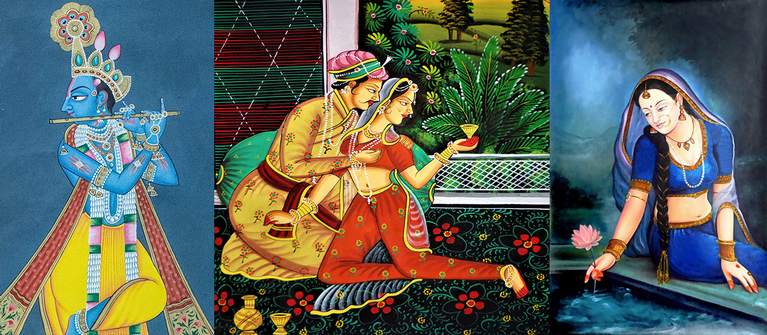 Rajasthani paintings are known the world over and are considered collectors' items. The rulers of various states were patrons of art. This gave rise to several painting styles, each with a distinct feature. Vegetable dyes, fine brush strokes, stories of velour and from mythology, scenes from the court, all define these paintings.