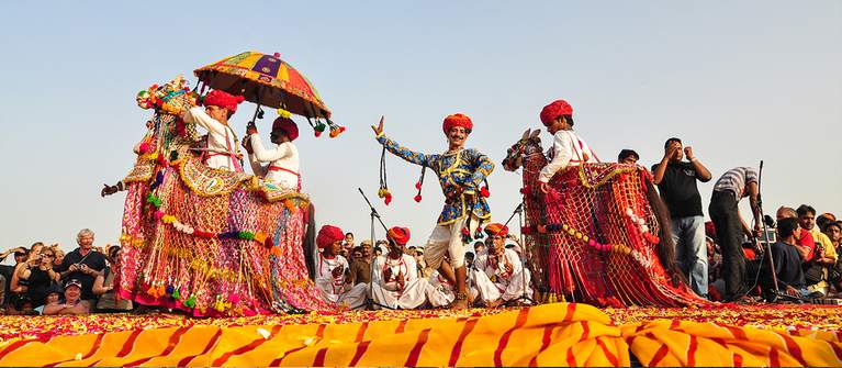 Being a desert land, the life in Rajasthan revolves around Camels. As a result, Rajasthan has several fairs that revolve around camels and cattle. Events like camel races, best dressed camel and tug of war with elephants are common; so are other events like best moustache. Basically, fair time in Rajasthan is party time and visitors come from far and near for the experience.