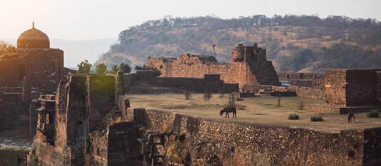 In the late 19th century, the Mughals gifted Ranthambhore Fort to the Maharaja of Jaipur. The royal family of Jaipur made the surrounding forests their hunting reserve. The circumference of the fort is 7km. There is a good road leading to the fort and the climb takes 20 minutes. Very often tigers can be spotted in the park below from this vantage point. There are also several temples located in the complex.