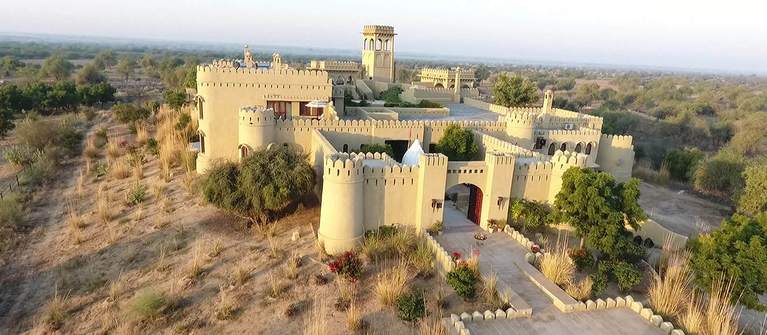 Rohet Garh is a 375 year old fortified desert home of the descendants of the Rathores and lies on the banks of a small lake teeming with birdlife, just south of Jodhpur. The family that owns and manages the place lives here and personally looks after the needs of its guests. Painted gates lead to a low lying building that has rooms as well as a wildlife camp.
